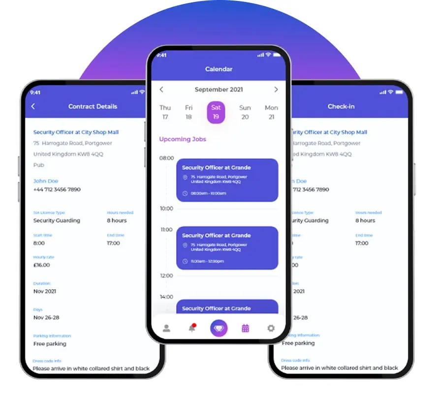 From event security and corporate protection to emergency guard requests, the app provides a secure security guard hiring platform that ensures peace of mind.