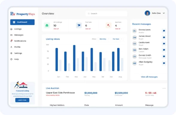 - Options for homeowners and realtors to pay for top-rate list visibility and stand out in crowded asset marketplaces.