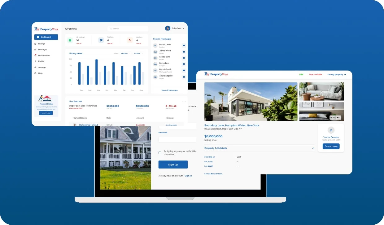 - Secure in-app messaging that protects user data and ensures reliable communication at some point of the property transaction.
